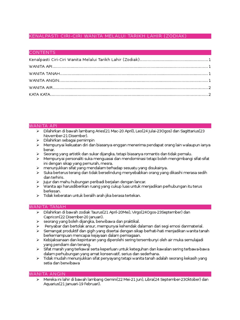 Ti Ciri Ciri Wanita Melalui Tarikh Lahir Zodiak