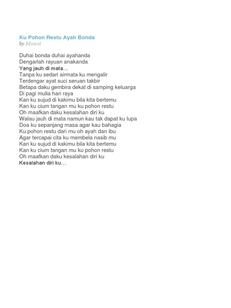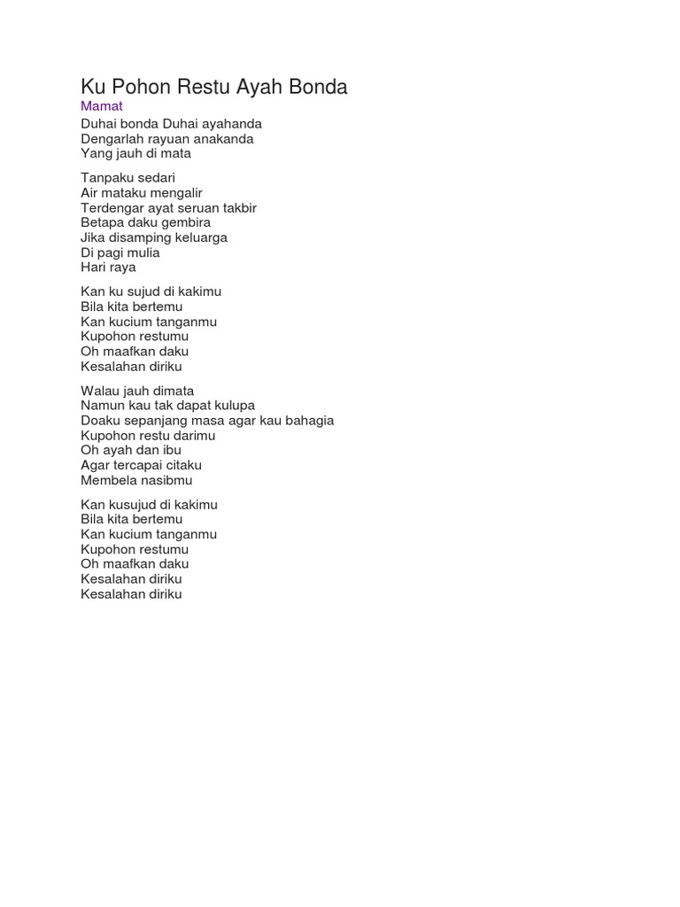 Ku Pohon Restu Ayah Bonda Lirik Lagu Raya Docx