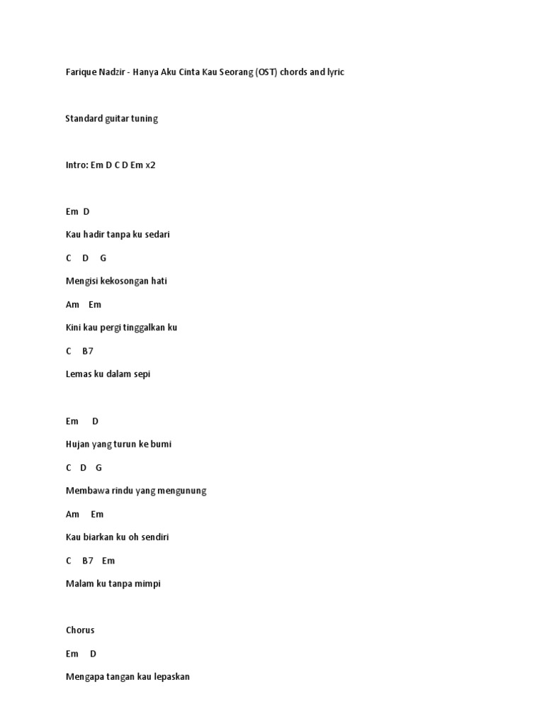 Lirik Lagu Dan Chord Gita Lirik Lagu Farique Nadzir Ost Hanya Aku Cinta Kau Seorang
