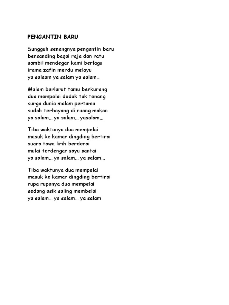 Ilmu Pengetahuan 9 Lirik Lagu Pengantin Baru