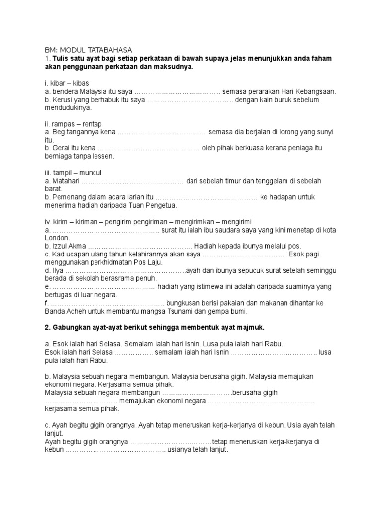 Laman Bahasa Melayu Spm Cadangan Soalan 3 A Membina Ayat Menggunakan Perkataan Diberi Peperiksaan Percubaan Spm Mrsm