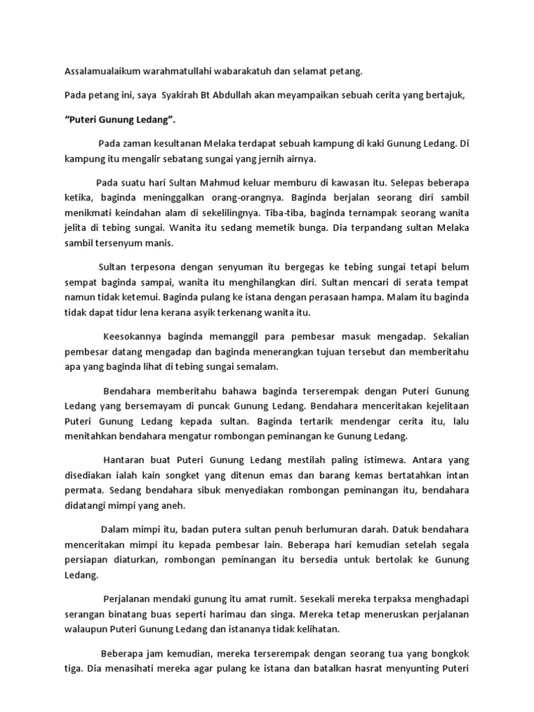 Peminangan Puteri Gunung Ledang Prosa Tradisional