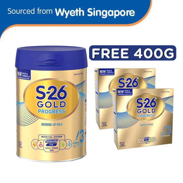 Wyeth Nutrition S 26 Gold Progress Stage 3 Growing Up Formula 2 Fl 900g Free 2 X 200gr Sample Pack Shopee Singapore