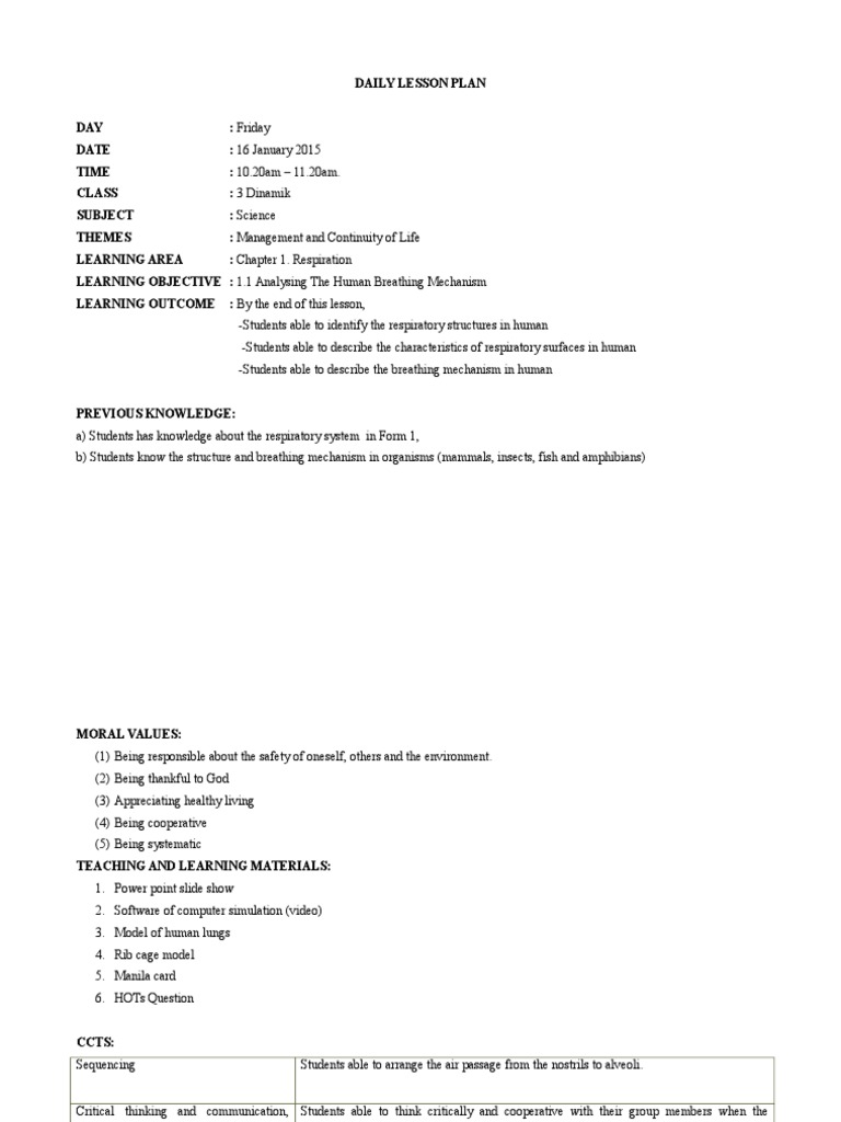 Form 3 Induction Set Set 2 Respiratory System Breathing
