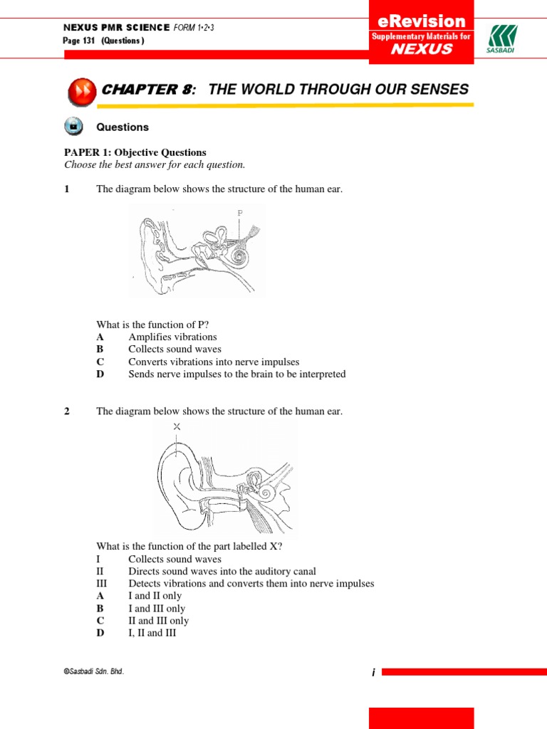Nexus Pmr Science Form 1 2 3 Page 131 Questions Hearing Ear