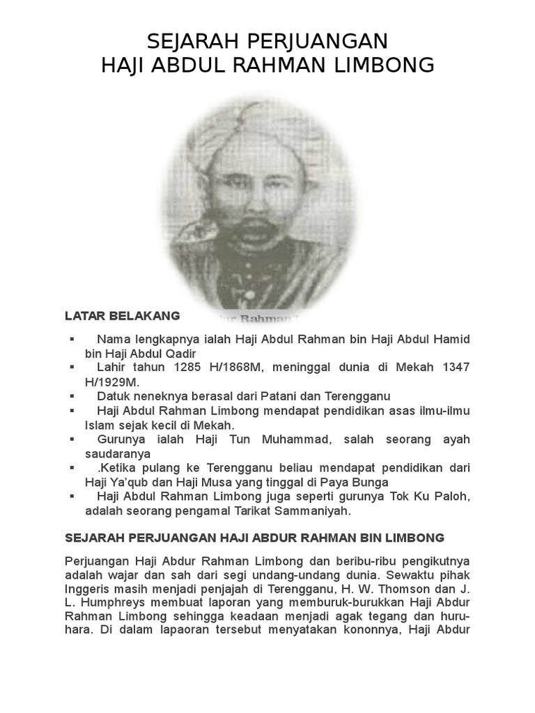 Haji Abdul Rahman Limbong Terengganu Pejuangan Tokoh Tempatan
