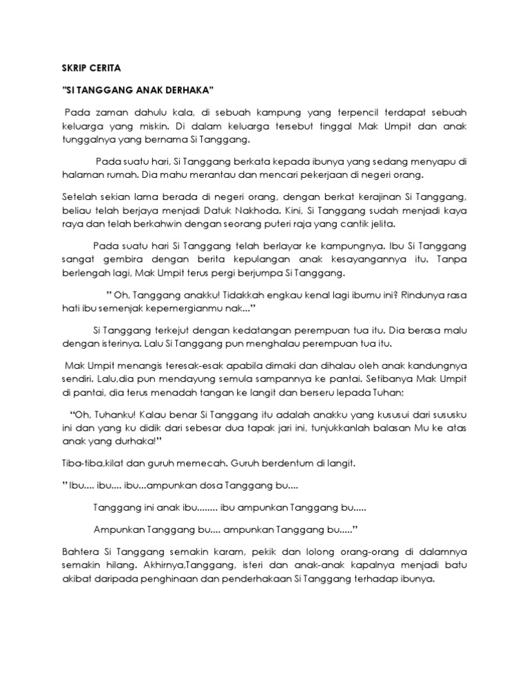 Si Tanggang Anak Derhaka Docx Document